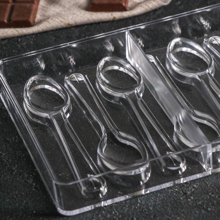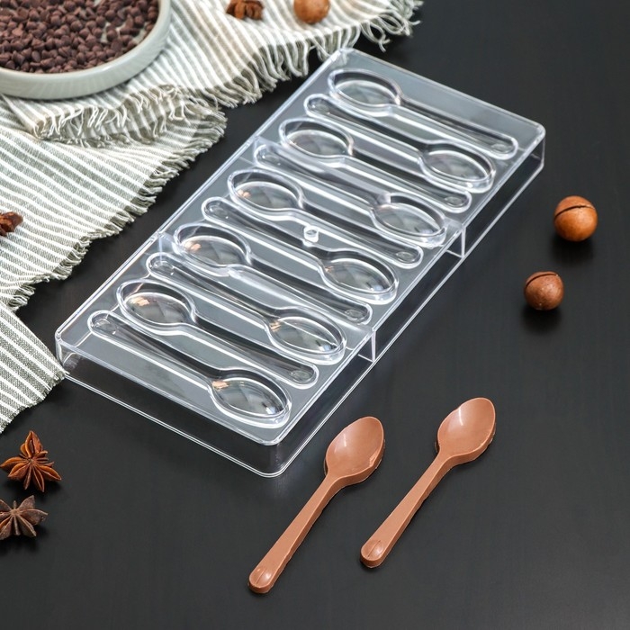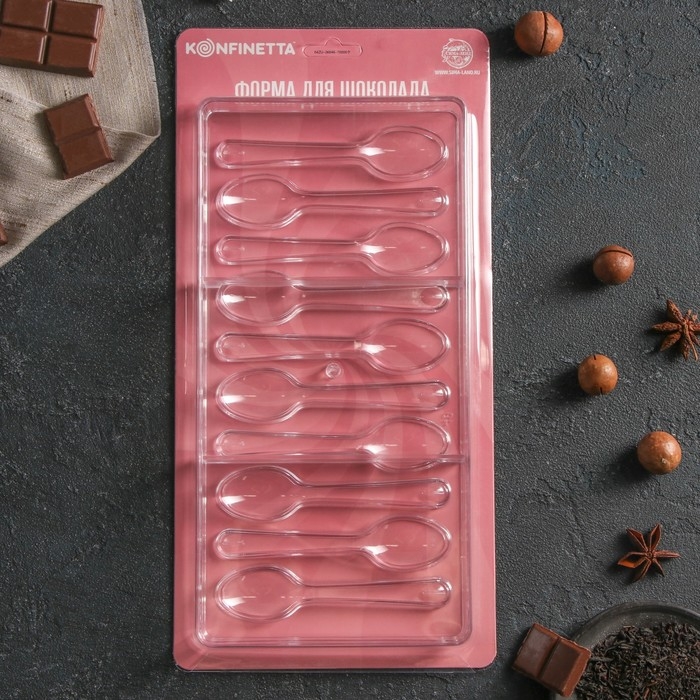 Форма для шоколада KONFINETTA «Ложки», 27,5×13,5 см, 10 ячеек 11,5×2,7 см, цвет прозрачный