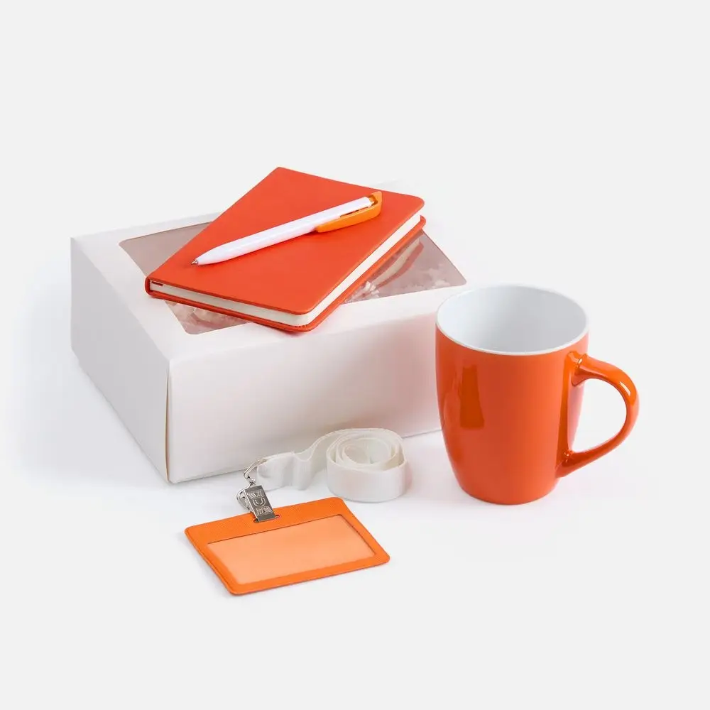 Лаконичный приветственный набор Hop In содержит все самое необходимое для успешной и быстрой адаптации нового сотрудника в команде. Это основные офисные принадлежности — блокнот и ручка — для подробной записи идей и планов; чехол для пропуска на ленте — для безопасности и идентификации; компактная кружка — для приятного перерыва в компании с новыми коллегами.