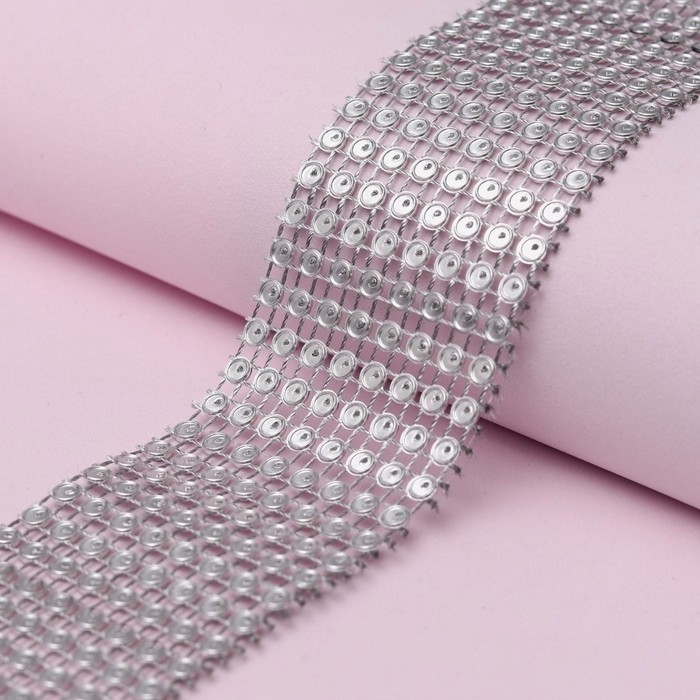 Лента с имитацией страз, 4 см, 9 ± 1 м, цвет серебряный