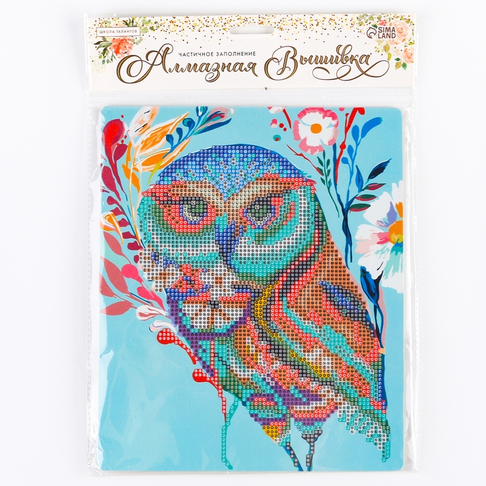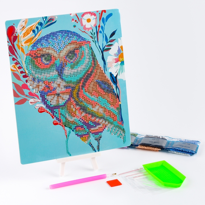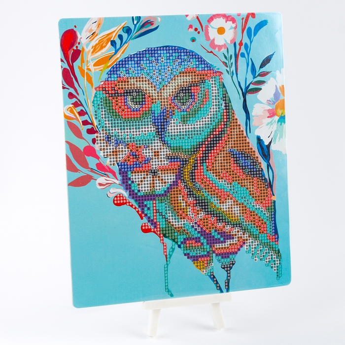 Алмазная вышивка «Сова-красавица», с подставкой, с частичным заполнением