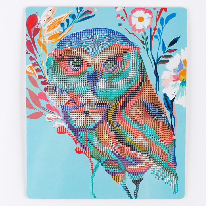 - Набор включает все необходимые материалы: картонный холст со схемой, стразы, карандаш для страз, клеевую подушечку, подставку для картины и ёмкость для страз.