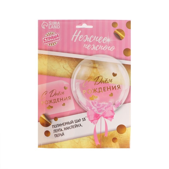 Воздушный шар полимерный 18", «Нежнее нежного», с перьями, наклейки