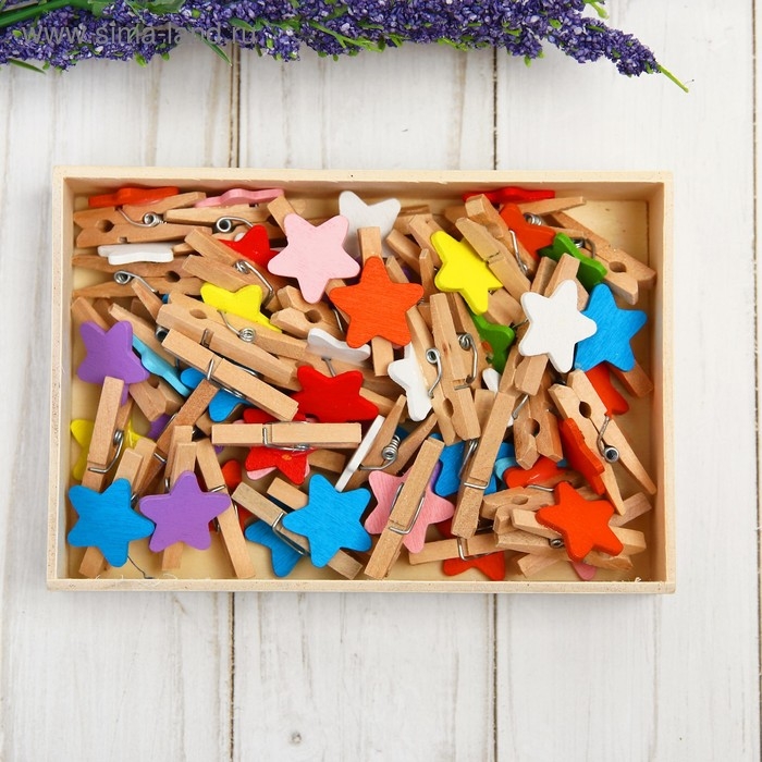Набор прищепок в деревянной коробке «Звёздочки», набор 50 шт.
