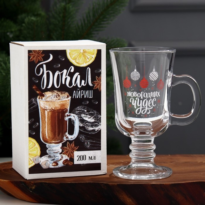 Кружка стеклянная «Новогодних чудес», 200 мл, деколь