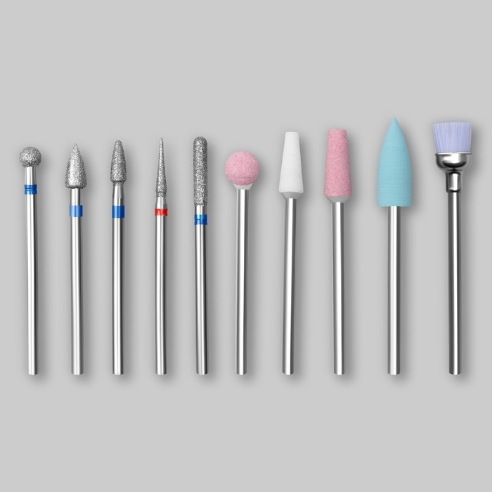 Фрезы для маникюра в пластиковом органайзере, 10 шт