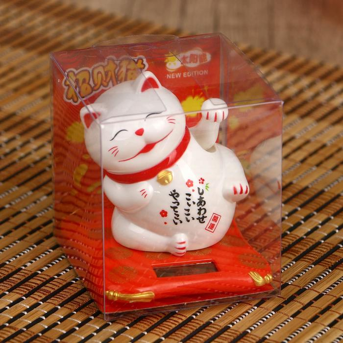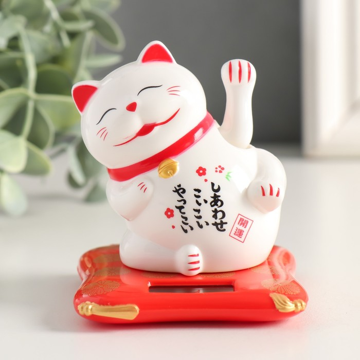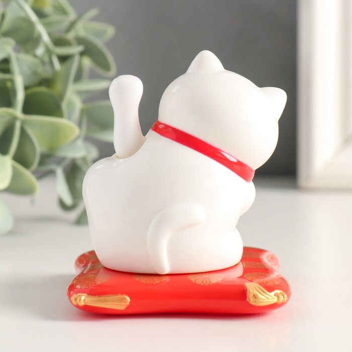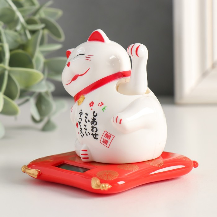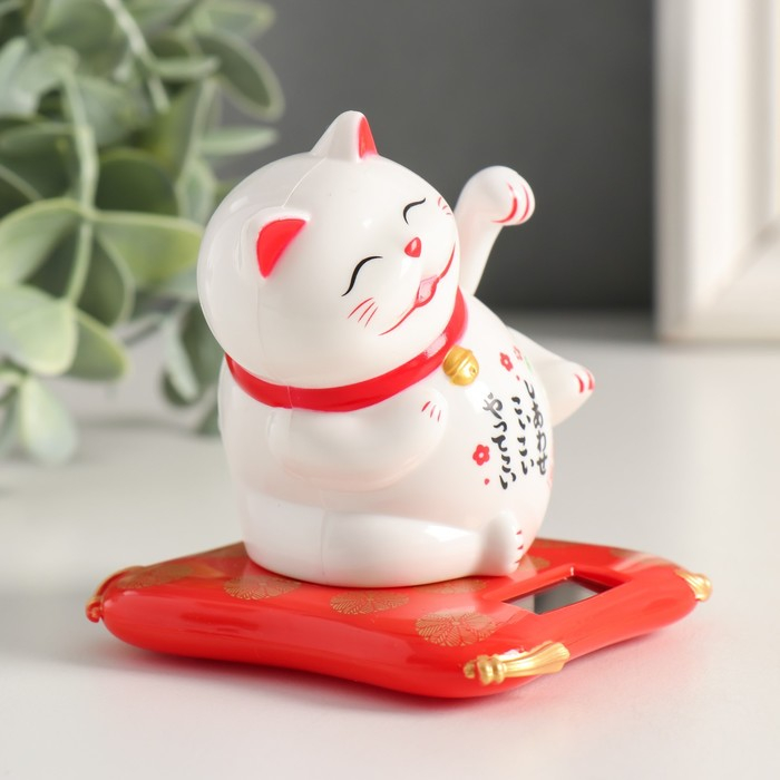 Маятник пластик от солнечной батареи "Манэки-нэко белый на подушке" 6,5х7,5х7 см