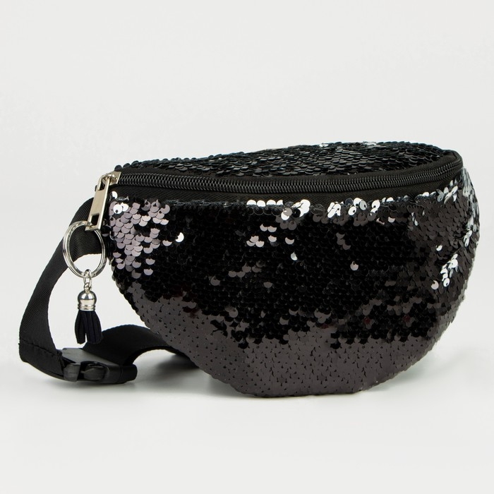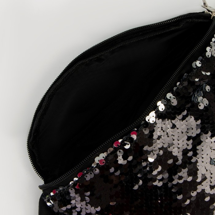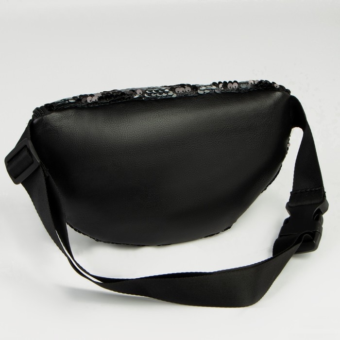 Сумка детская поясная для девочки с пайетками, цвет чёрный