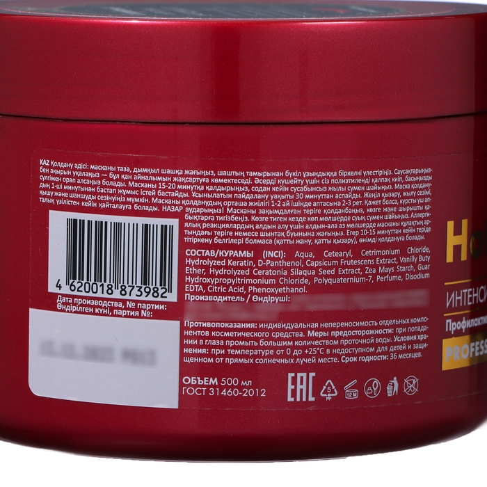 Состав: Aqua,Cetearyl Alcohol,Cetrimonium Chloride, Hydrolyzed Keratin, D-Panthenol, Capsicum Frutescens Extract, Vanilly Butyl Ether,Hydrolyzed Ceratonia Silaqua Seed Extract, Zea Mays Starch, Guar Hydroxypropyltrimonium Chloride, Polyquaternium-7, Perfume, Disodium EDTA, Citric Acid, Phenoxyethanol.