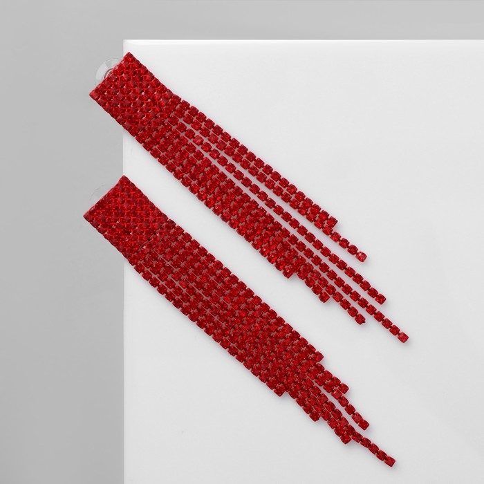 Серьги висячие со стразами «Маскарад» ступенька, цвет красный, 9,7см