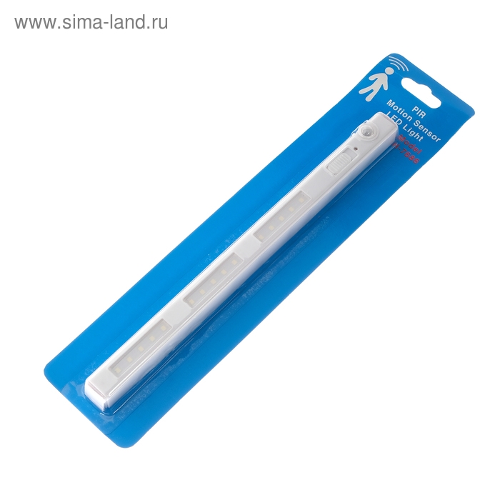 Светильник светодиодный с датчиком движения, 6LED, 2,5 Вт, от батареек 3*AAA, 3000К, т-белый