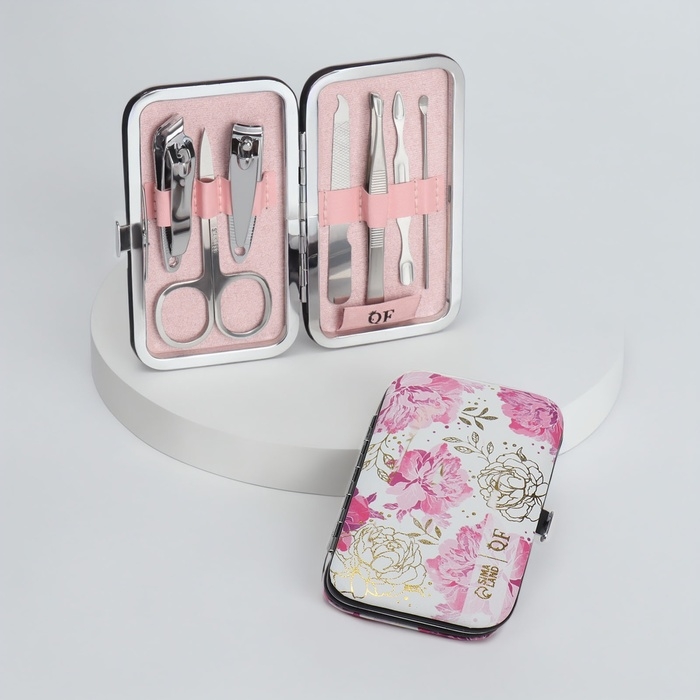Набор маникюрный «Нежные пионы», 7 предметов, в футляре