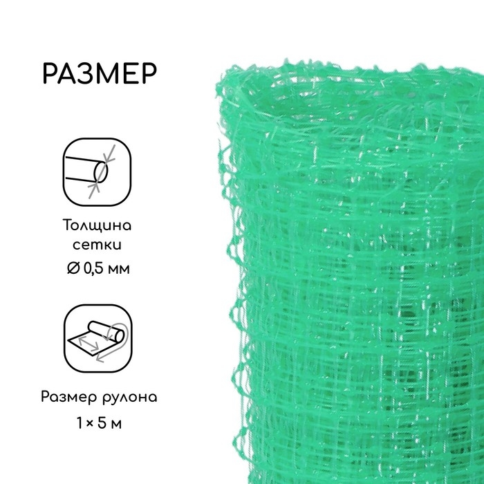 Сетка садовая, 1 × 5 м, ячейка ромб 13 × 13 мм, для птичников, пластиковая, зелёная, Greengo, в рулоне