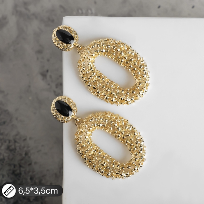 Серьги эмаль «Карибы» овал, цвет чёрный в золоте
