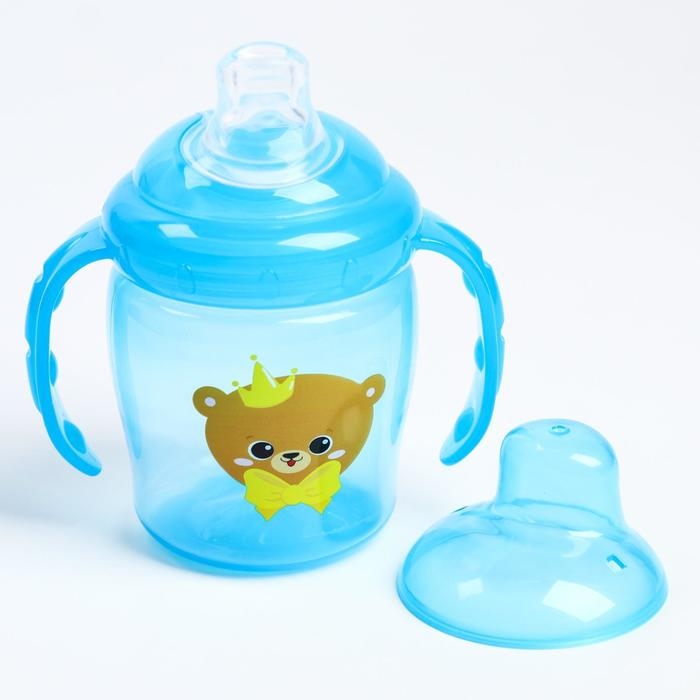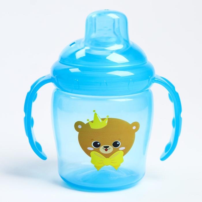 Поильник - непроливайка детский с мягким носиком «Мишка принц», 250 мл., с ручками, цвет голубой