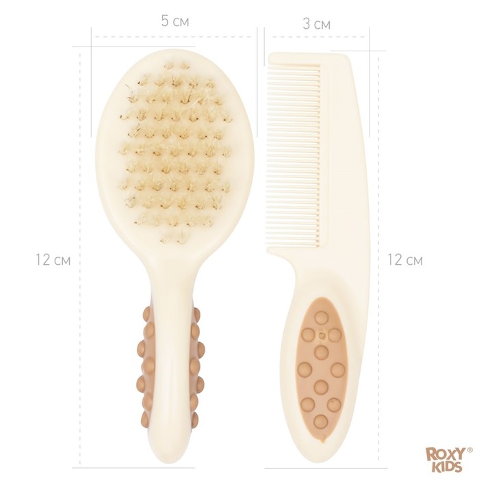 Расческа с натуральной щетиной и расческой-гребешком ROXY-KIDS позволит наиболее нежно и комфортно ухаживать за волосами малыша. Эти аксессуары не причинят крохе боль, не травмируют нежную кожу и не будут агрессивно воздействовать на мягкие ткани детской головки. Комплект из гребешка и щетки от ROXY-KIDS обязательно пригодится родителям детей первых лет жизни. C помощью расчески с частыми, но не острыми зубчиками удобно расчесывать запутавшиеся и скатавшиеся волосы, а с помощью мягкой натуральной щетки можно пригладить их и придать аккуратный вид. Она также пригодится для массажа кожи головы.