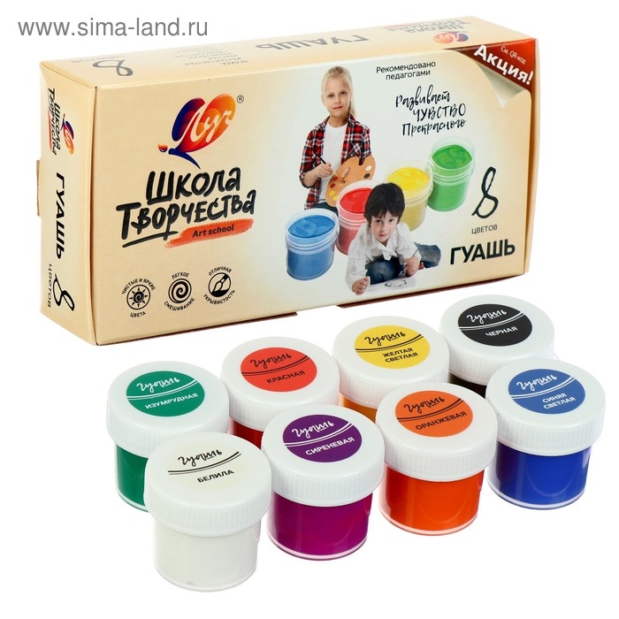 Гуашь 8 цветов х 20 мл "Школа творчества"
