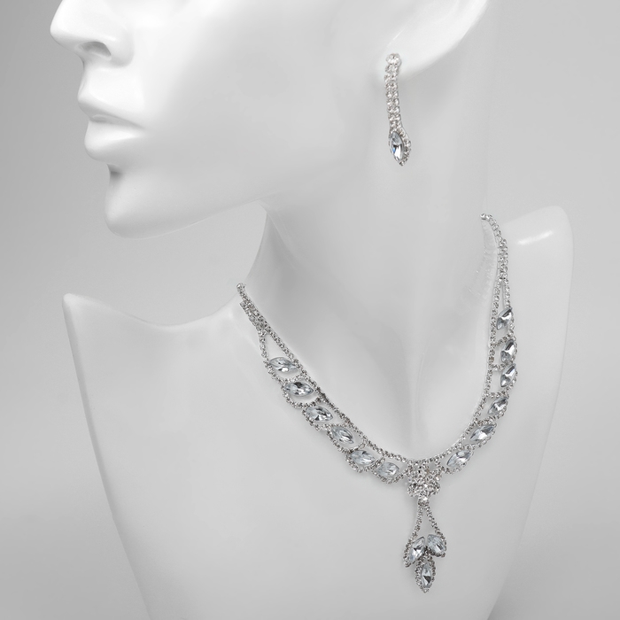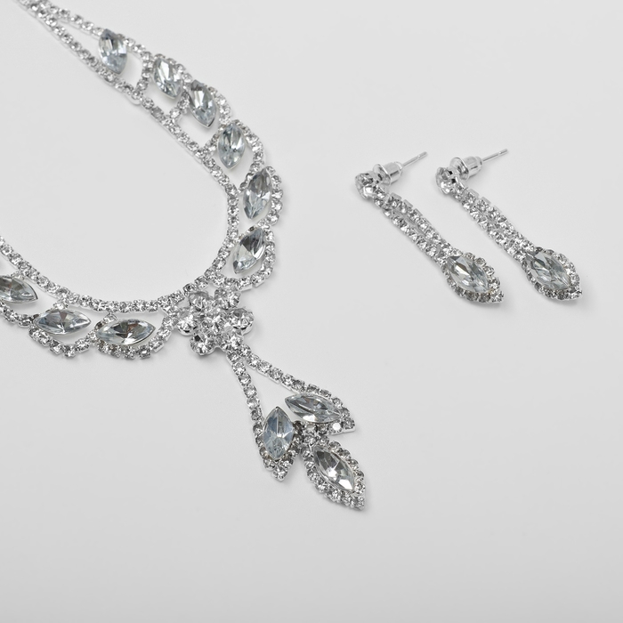 Набор 2 предмета: серьги, колье «Листопад» ромб, цвет белый в серебре, 45 см