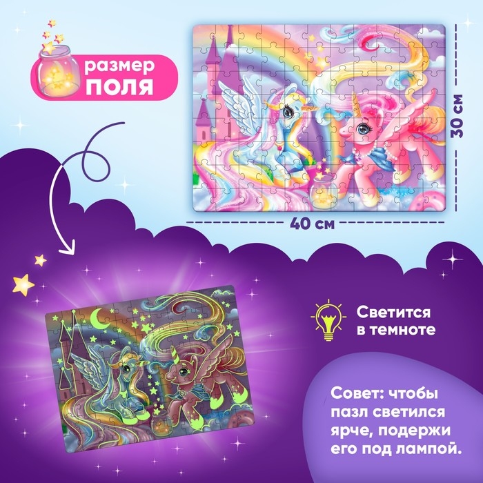 Светящийся пазл «Единорог», флуоресцентные краски, 76 деталей