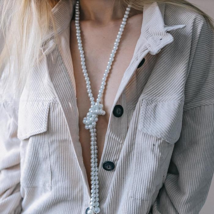Бусы «Жгут» жемчуг, шар № 2,6,8, цвет белый в серебре, L=45 см