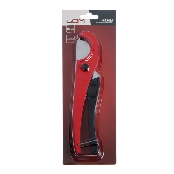 Ножницы для резки пластиковых труб от марки «ЛОМ» — это ручной инструмент, который хорошо лежит в руке и позволяет без усилий разрезать полипропиленовые трубы диаметром до 42 мм.