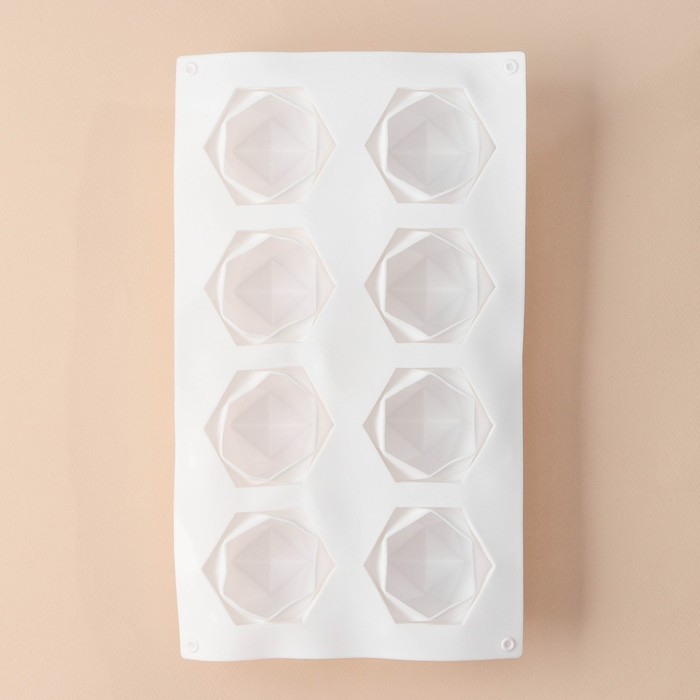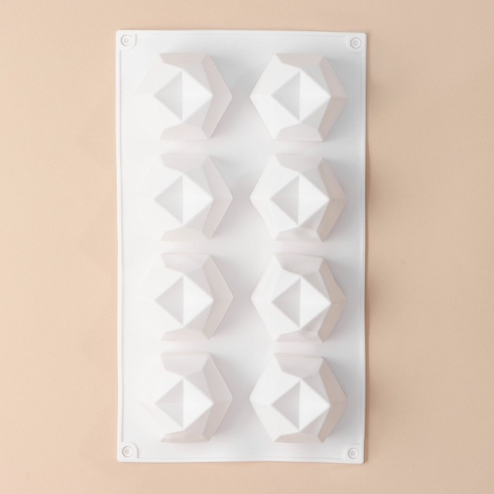 Форма для муссовых десертов и выпечки KONFINETTA «Грани», силикон, 29,5×17,2 см, 8 ячеек (5,6×6,4×4,5 см), цвет белый