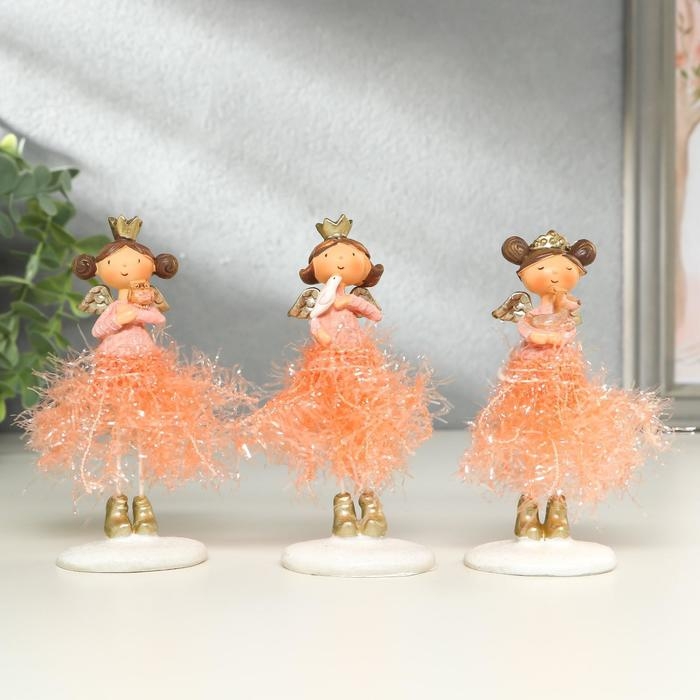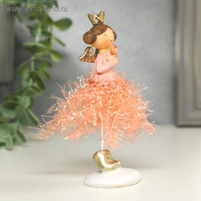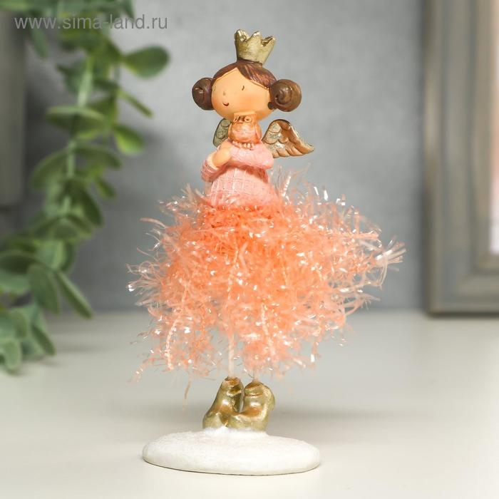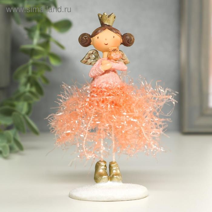 Сувенир полистоун "Ангелочек-принцесса в юбке-мишуре со зверьком" МИКС 12х4х5 см
