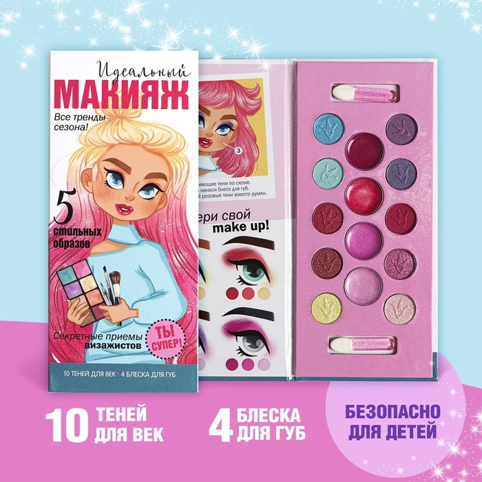 Набор косметики для девочки «Идеальный макияж» тени 10 цв по 1,3 гр, блеск 4 цв по 0,8 гр
