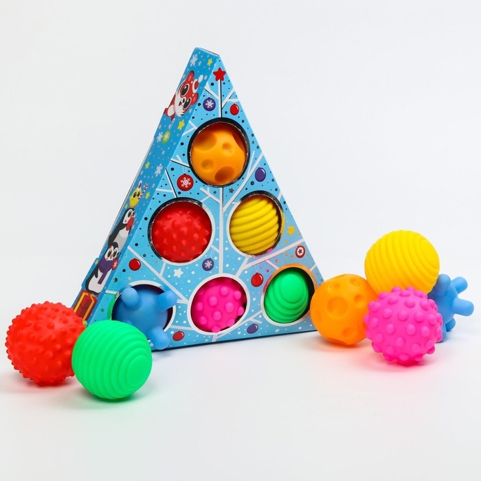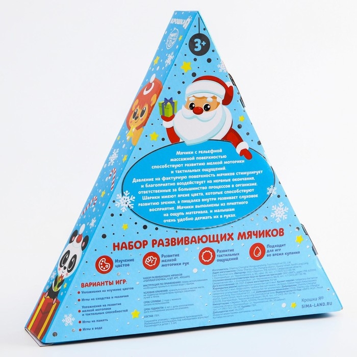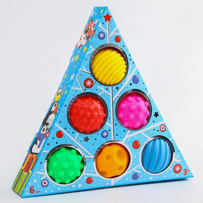 Подарочный набор развивающих мячиков «Голубая ёлочка», 6 шт., новогодняя подарочная упаковка, Крошка Я