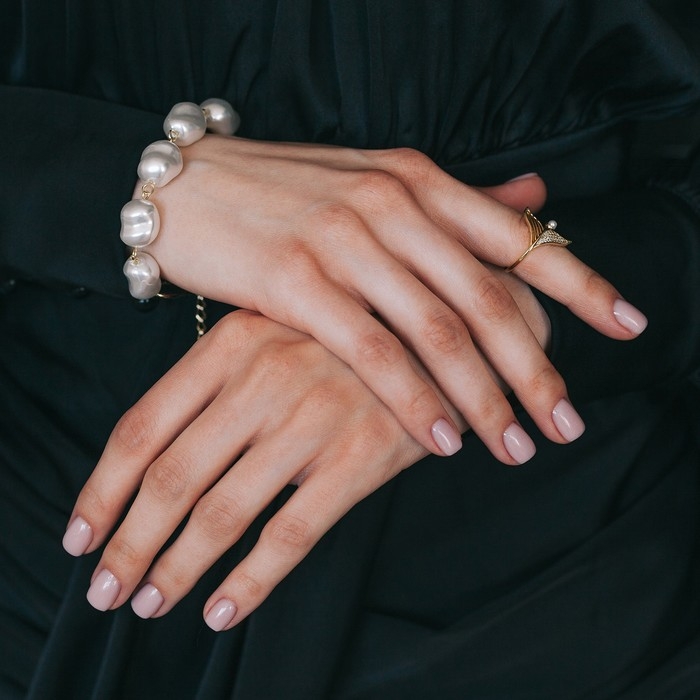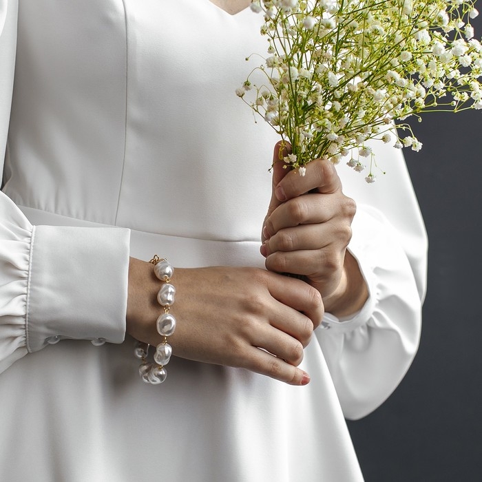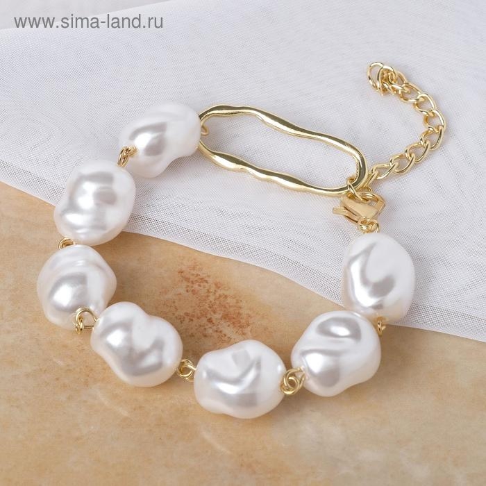 Браслет жемчуг «Барокко» с кругом, цвет белый в золоте, L=18 см