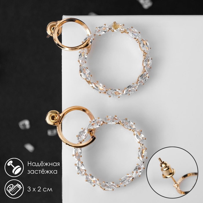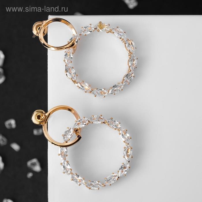 Серьги со стразами «Вспышка» два круга, цвет белый в золоте