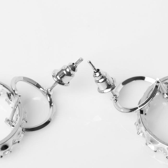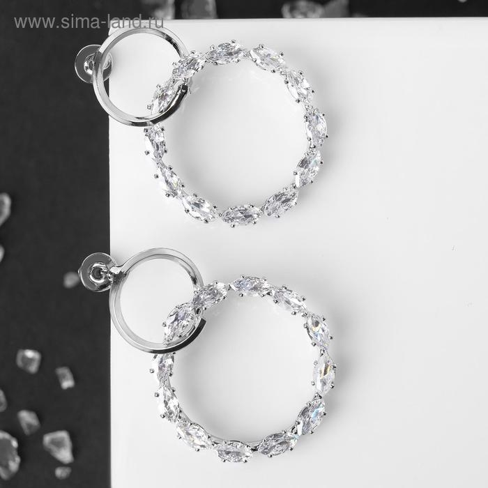 Серьги со стразами «Вспышка» два круга, цвет белый в серебре