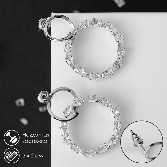 Серьги со стразами «Яркая классика» в обрамлении, цвет белый в серебре, d=1,4 см