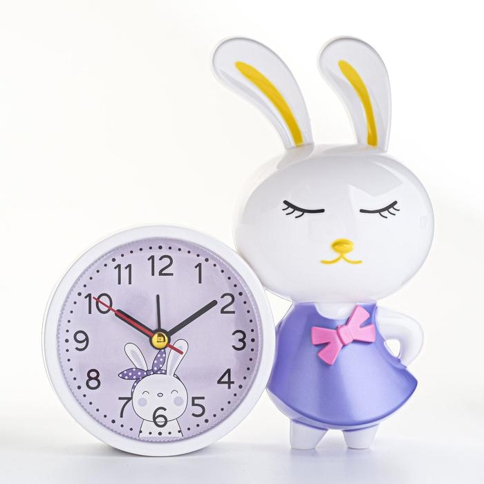 Часы - будильник настольные "Зайка", плавный ход, циферблат d-8.7 см, 15 х 16 см, АА