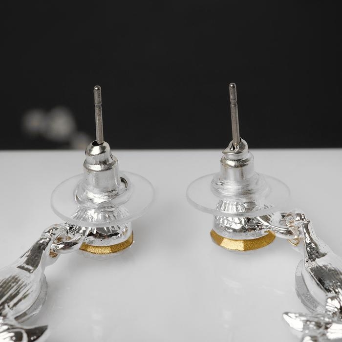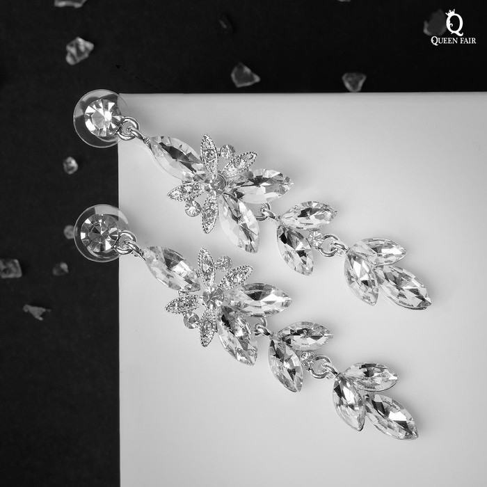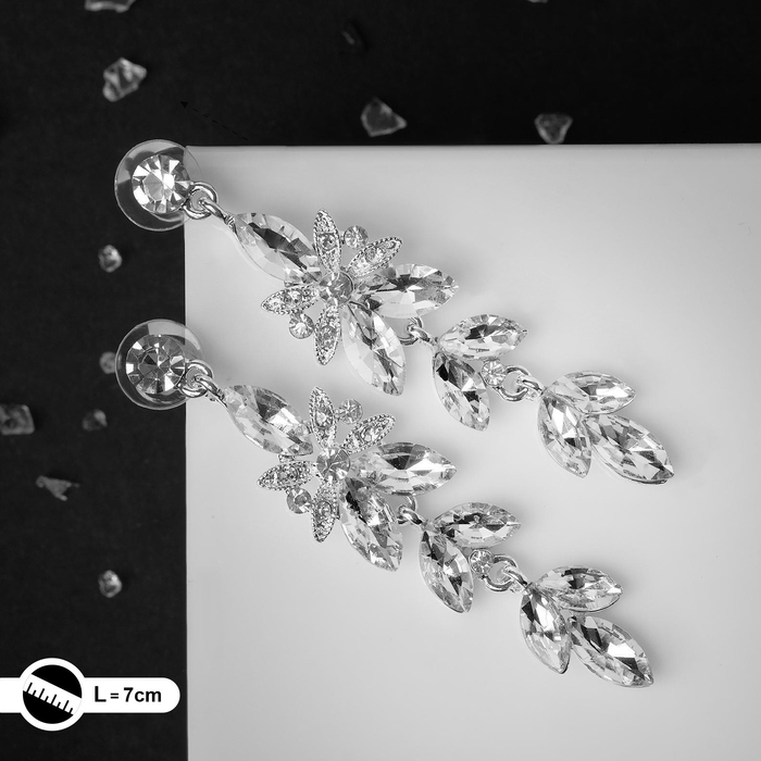 Серьги висячие со стразами «Ажур» весеннее настроение, цвет белый в серебре, 7 см