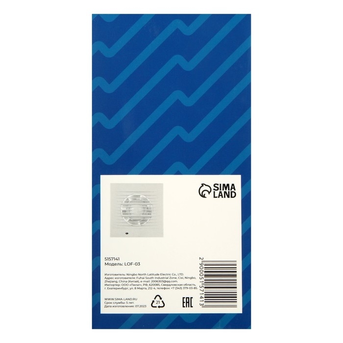 Вентилятор вытяжной ZEIN LOF-03, d=100 мм, 220 В, 15 Вт, сетка, шнурковый выключатель, белый
