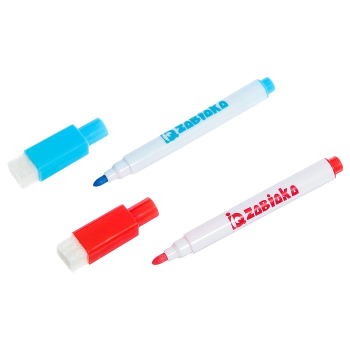 В комплекте малыш найдёт 2 маркера и карточки с интересными заданиями.