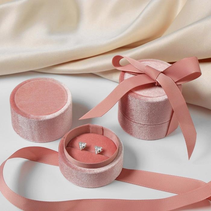 Футляр из корейского бархата под серьги/кольцо «Сюрприз» 5,8×5,3 см, цвет светло-розовый