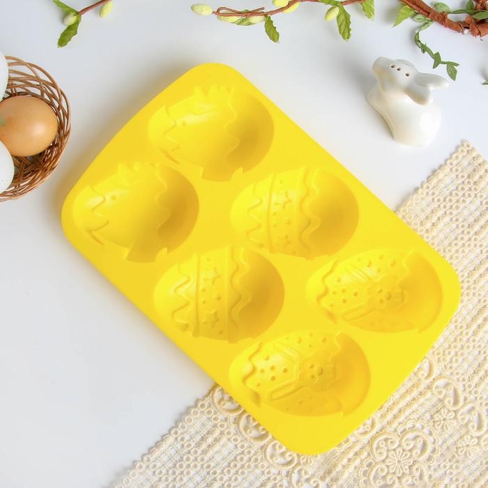 Силиконовая форма на Пасху «Зайцы и цыплята», жёлтая