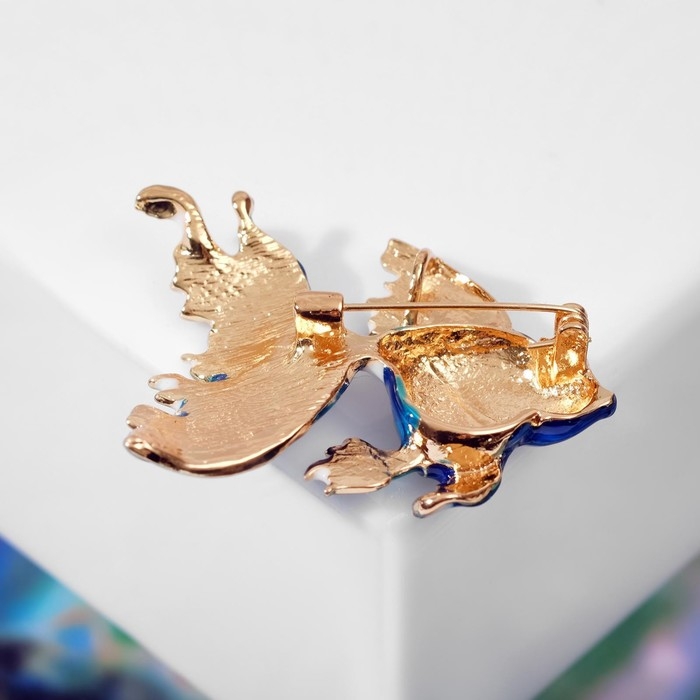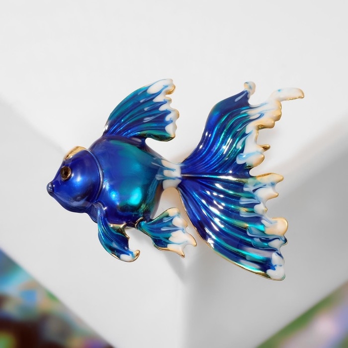 Брошь «Рыбка» петушок, цвет бело-синий в золоте