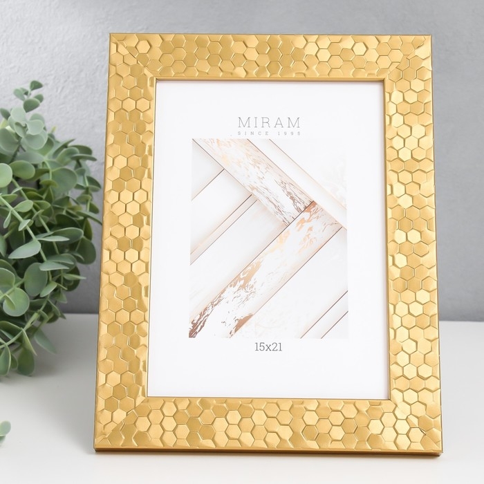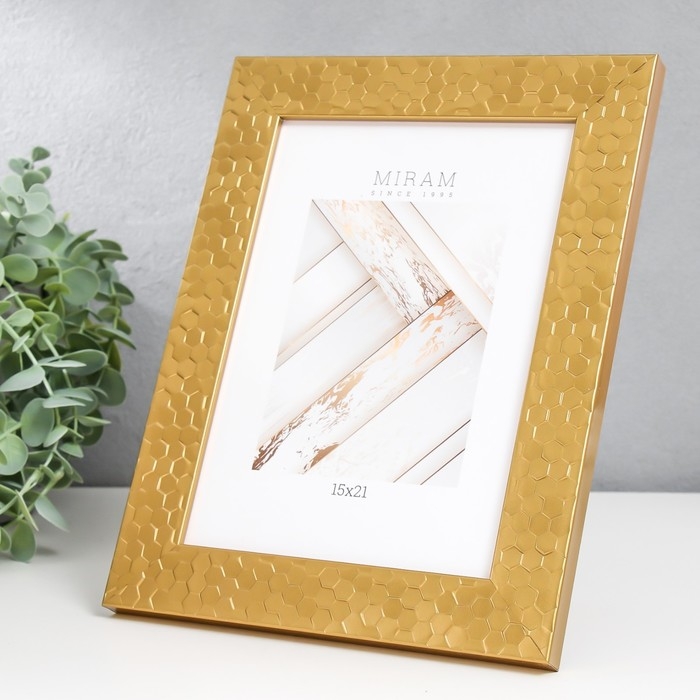 Фоторамка пластик "МИРАМ" 15х21 см, 651618 золото (пластиковый экран)