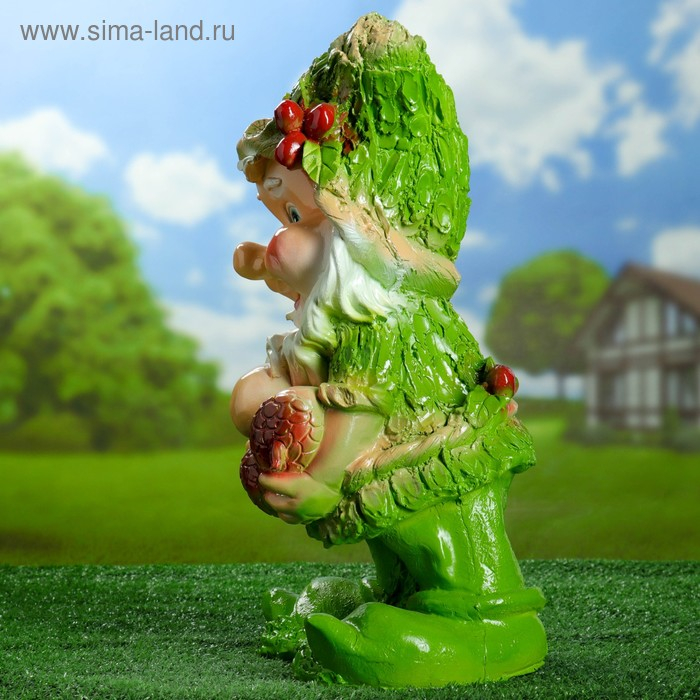 Садовая фигура "Гном с желудями" зеленый 45х26см