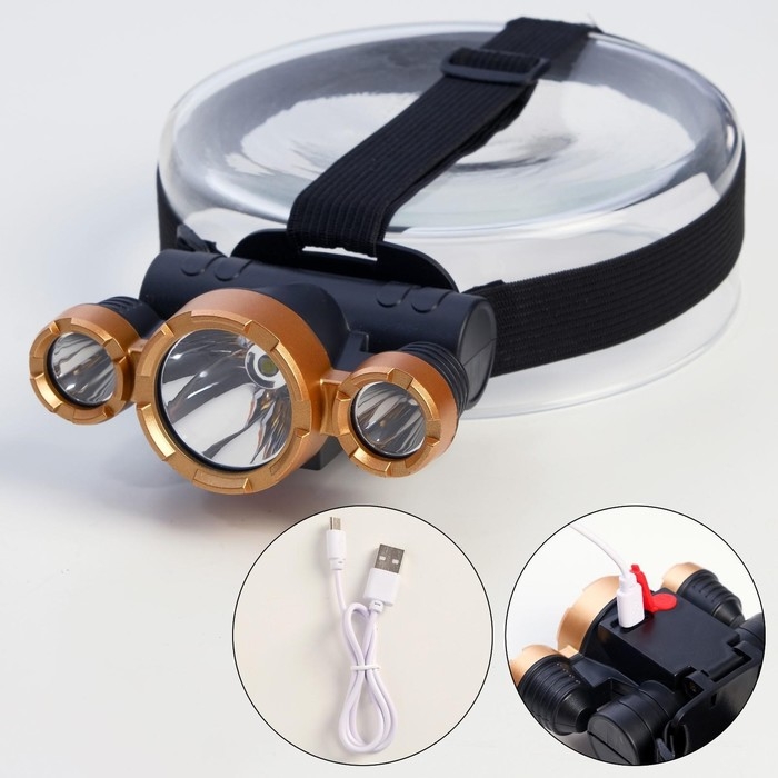 Фонарь налобный аккумуляторный 1.5 Вт, 1200 мАч, USB, 3 режима