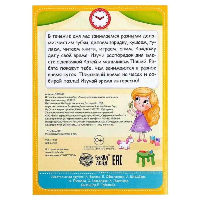 Игровой и обучающий набор «Распорядок дня», пазлы, книга, часы