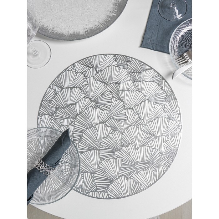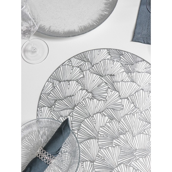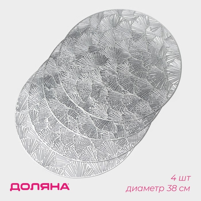 Салфетки сервировочные на стол Доляна «Веер», d=38 см, 4 шт, цвет серебряный