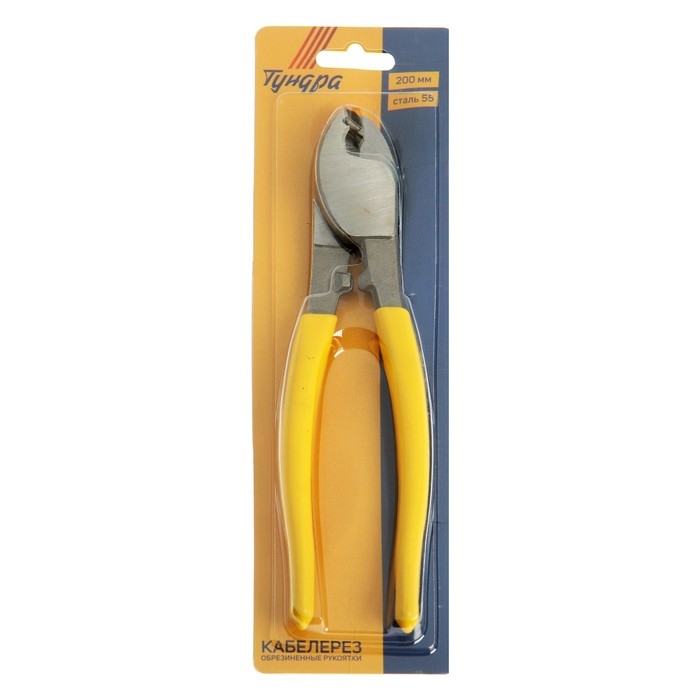 Кабелерез ТУНДРА, сталь 55, для цветных металлов до 4 мм, обрезиненные рукоятки, 200 мм