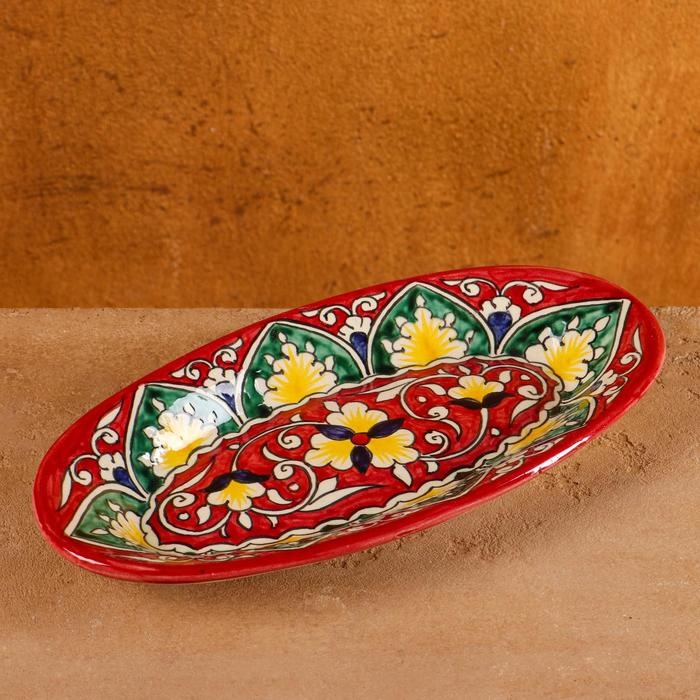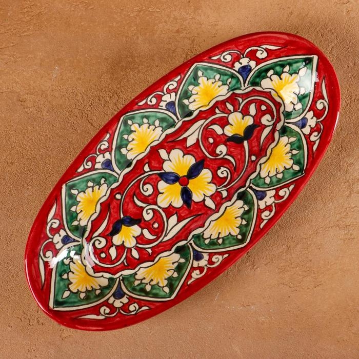 Селёдочница Риштанская Керамика "Цветы", 24 см, красная, микс