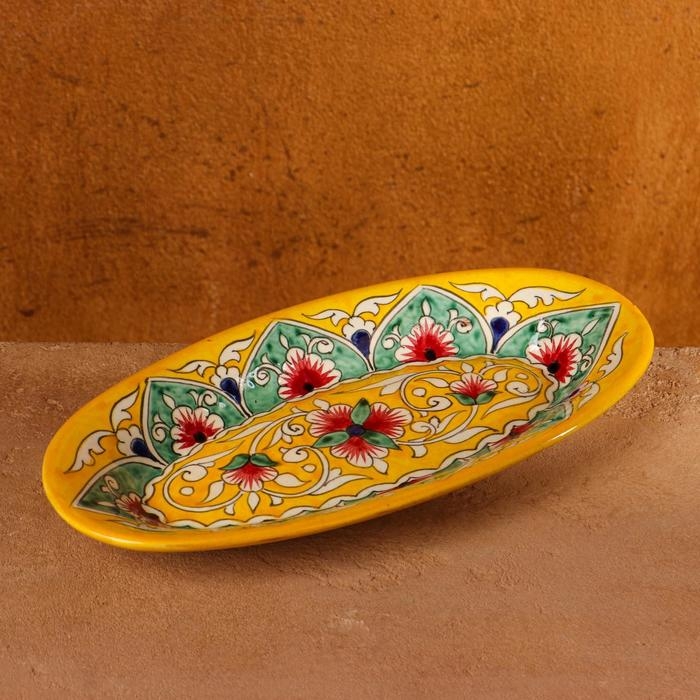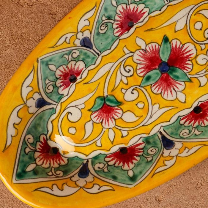 Селёдочница Риштанская Керамика "Цветы", 24 см, жёлтая, микс