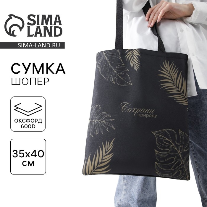 Шопер «Сохрани природу», без молнии, без подклада, цвет чёрный