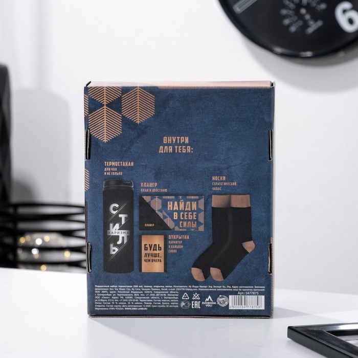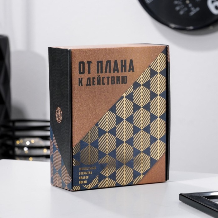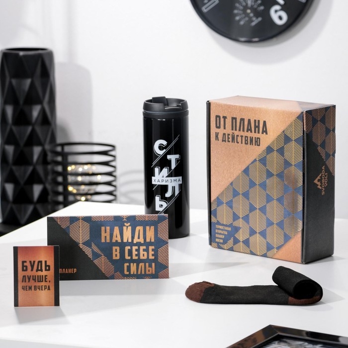 Подарочный набор «От плана к действию», термостакан, планер, открытка, носки