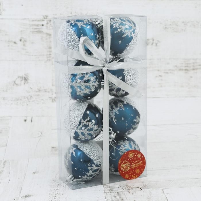 Набор шаров пластик d-6 см, 8 шт "Заснеженный лес" сине-белый